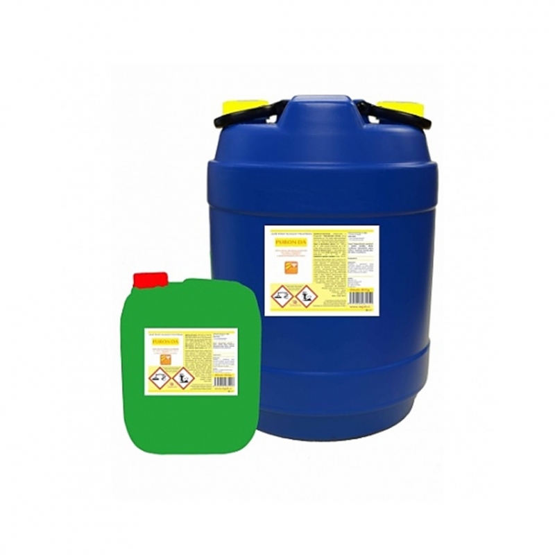 PURON DA 10kg dezinfekční alkalický čistič Signální slovo: NebezpečíStandardní věty o nebezpečnosti: Způsobuje těžké poleptání kůže a poškození očí. Vysoce toxický pro vodní organismy. Toxický pro vodní organismy, s dlouhodobými účinky.
