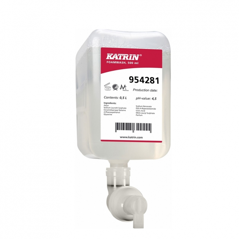 KATRIN pěnové mýdlo nové 500ml - 95428 jemné pěnové mýdlo v 500ml kartuši, příjemné na pokožku rukou.Bohatá a stabilní jemná pěna, zanechává ruce jemné, vyživuje pokožku rukou, 1250 dávek v 500ml balení.