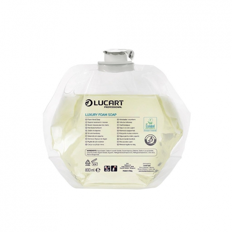 Pěnové mýdlo Lucart Identity luxury Jemné pěnové mýdlo s neutrální parfemací Velikost náplně 800ml,počet dávek 4000.Kód: 892298R